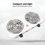 This heavy-duty 2000W Electric Dual-Burner Stove is a versatile and compact cooking solution perfect for small kitchens, dorm rooms, offices, or camping trips. Featuring dual 6-inch spiral heating elements, it provides fast and uniform heat distribution, allowing you to prepare two dishes simultaneously with independent 1000W burners (2000W total).