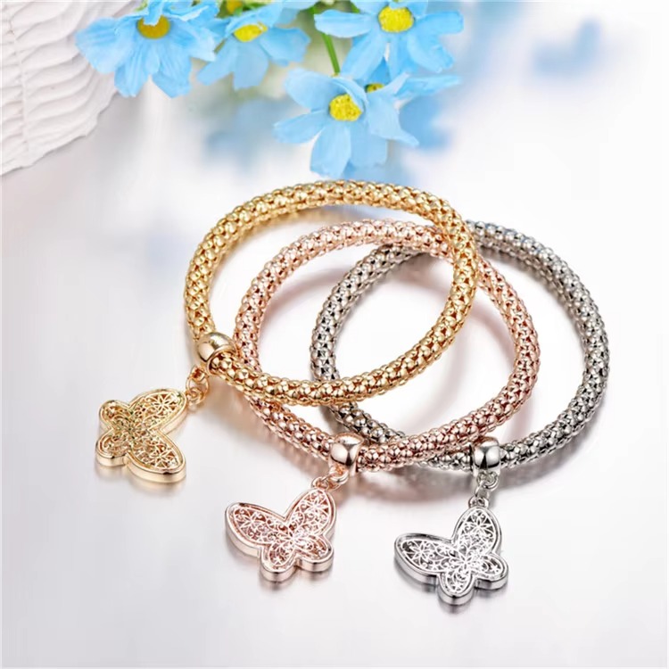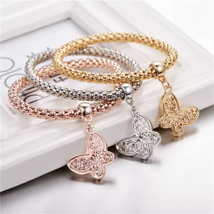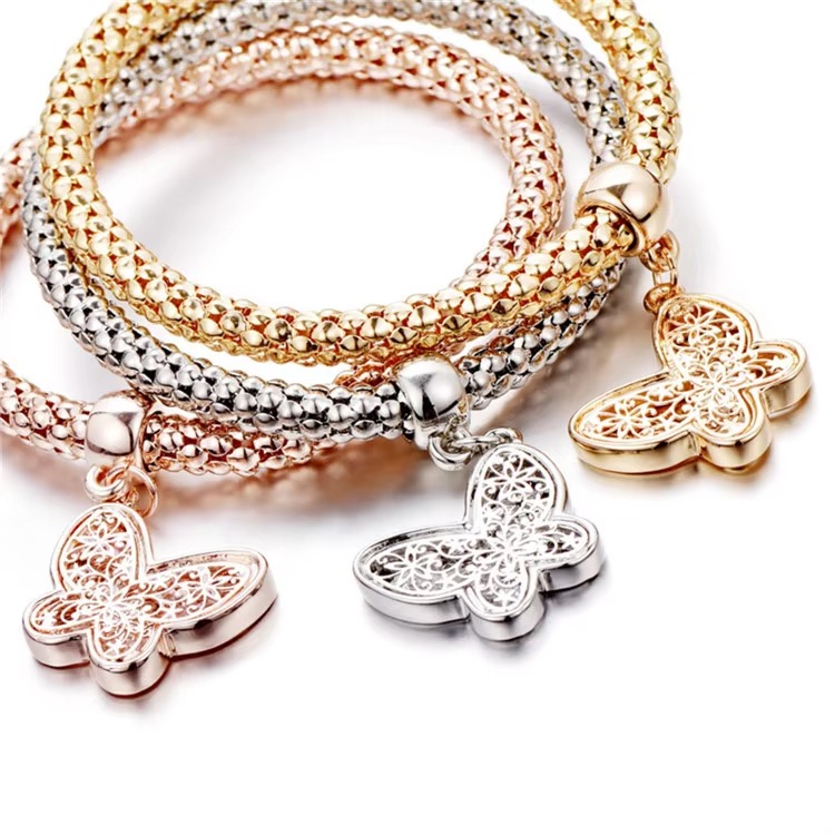 Home » Shop » 3-Piece Premium Mesh Chain Bracelet Set with Butterfly Charms – Gold, Silver & Rose Gold