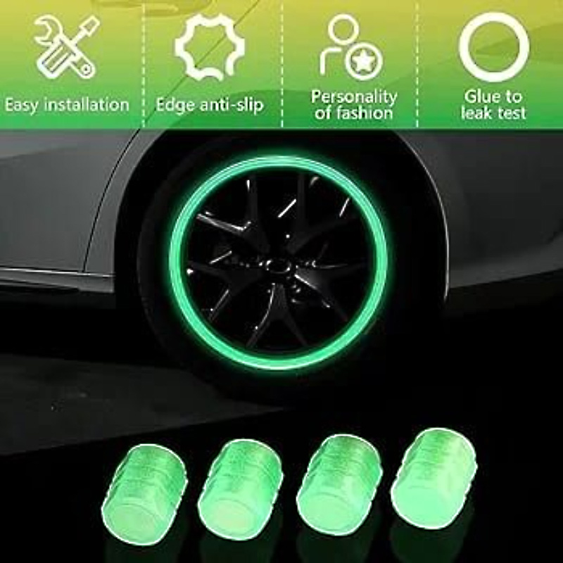 Enhance both the style and protection of your vehicle with these Universal Luminous Tire Valve Caps. Designed for car enthusiasts and everyday drivers alike, these caps absorb light during the day and emit a bright fluorescent green glow at night, creating an eye-catching halo effect as your wheels spin.