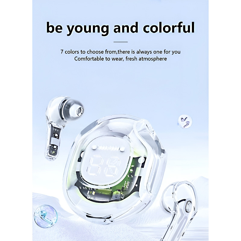 Step into next-generation audio with the Air 39 Transparent Wireless Earbuds, designed with a unique Small Ice Cube transparent body that blends futuristic style with reliable performance.