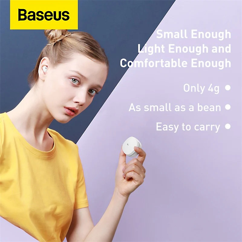Enjoy compact design with powerful sound using the Baseus Encok WM01 true wireless earbuds. Designed in a lightweight “bean-style” shape, these mini in-ear earbuds deliver clear audio, rich bass, and a comfortable, secure fit for everyday use.