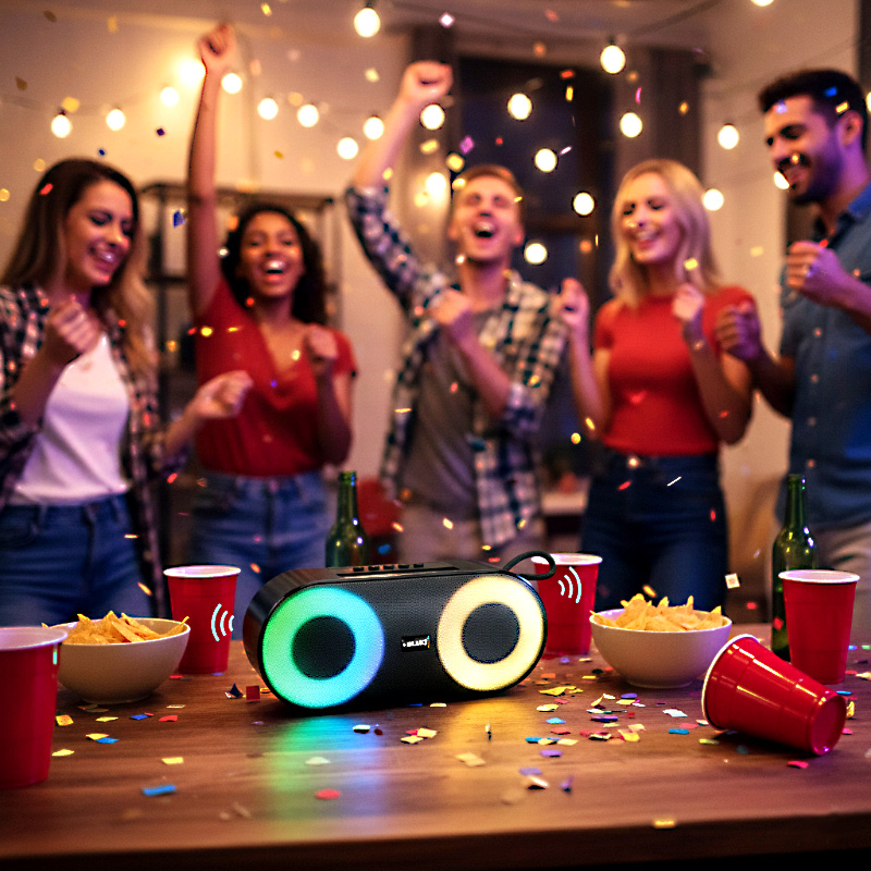 Vibrant RGB Party Lights: Built-in colorful LED ring lights create a lively atmosphere and sync beautifully with your music.
