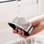Cleanup is a breeze. The crushed garlic collects neatly on the smooth surface, eliminating mess and extra dishes. Simply rinse under running water or place it in the dishwasher for quick, effortless cleaning. For added convenience, it comes with a silicone garlic peeler tube for easy peeling and a cleaning brush for simple maintenance.