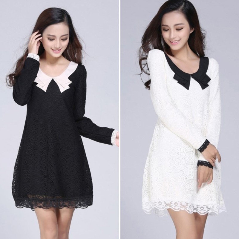 The standout feature is the beautifully tailored contrast collar, which adds a vintage-inspired touch of class. Whether you choose the classic black with cream accents for a bold look or the pristine white with black accents for a “doll-like” aesthetic, this dress is designed to flatter your figure and turn heads.