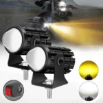 Featuring dual-color output (White + Yellow), it works perfectly as a bright driving light and a high-visibility fog/auxiliary light. The CSP LED chip provides intense brightness with low power consumption, making it energy efficient and long-lasting. Its wide voltage support (8V–80V) makes it universally compatible with motorcycles, ATVs, scooters, and even cars or small trucks.
