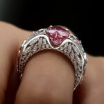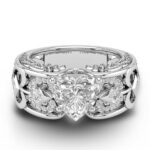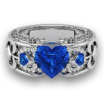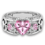 Exquisite Design: Features a stunning heart-shaped central crystal set on an intricately carved silver band.