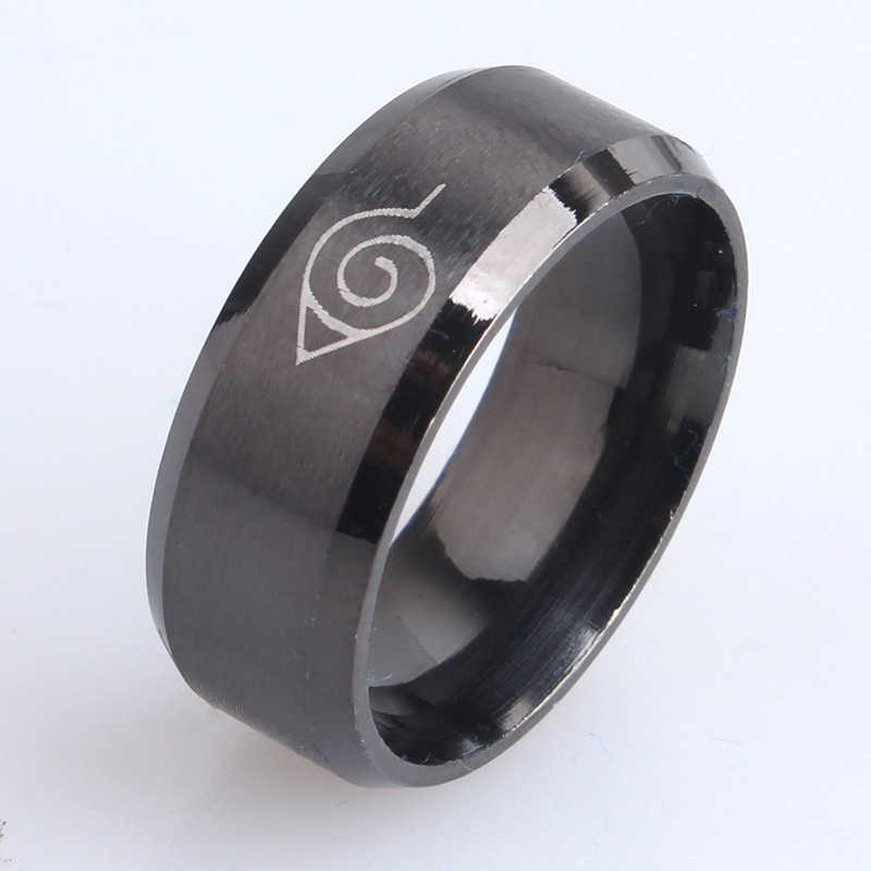 Home » Shop » Naruto Hidden Leaf Village Ring – Black Stainless Steel Anime Band for Men & Women – Konohagakure Symbol Cosplay Fashion Ring