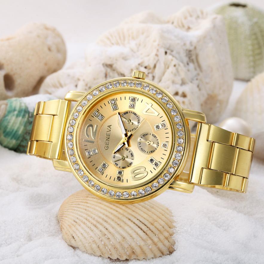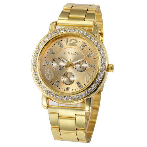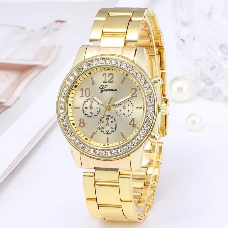 Define Your Style with Timeless Elegance! This Geneva Gold Luxury Watch is masterfully crafted for the modern woman who values sophistication and glamour. The radiant gold-tone finish combined with the shimmering rhinestone-encrusted bezel makes it the ultimate statement piece for weddings, parties, or any special occasion.