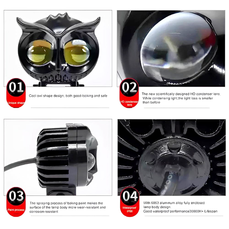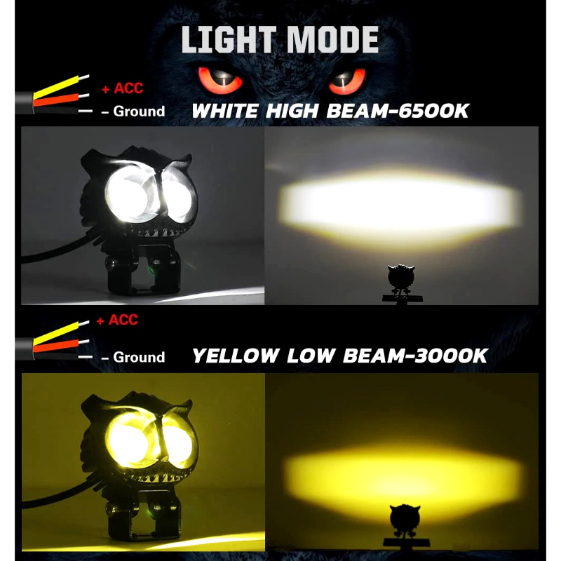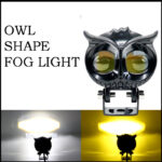 Home » Shop » Owl Shape Dual LED Motorcycle Headlight – Universal Fit Fog Light with White & Yellow Beam