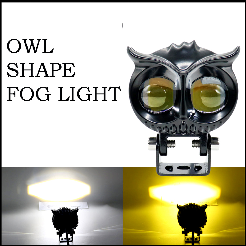 Owl Shape Dual LED Motorcycle Headlight – Universal Fit Fog Light with White & Yellow Beam