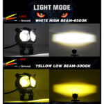 Light Modes: White High Beam (6500K), Yellow Low Beam (3000K)