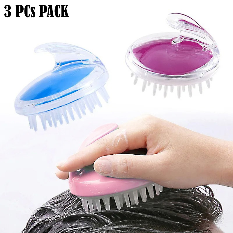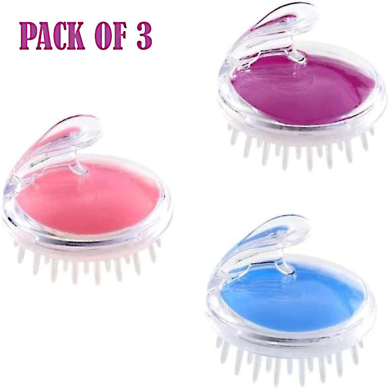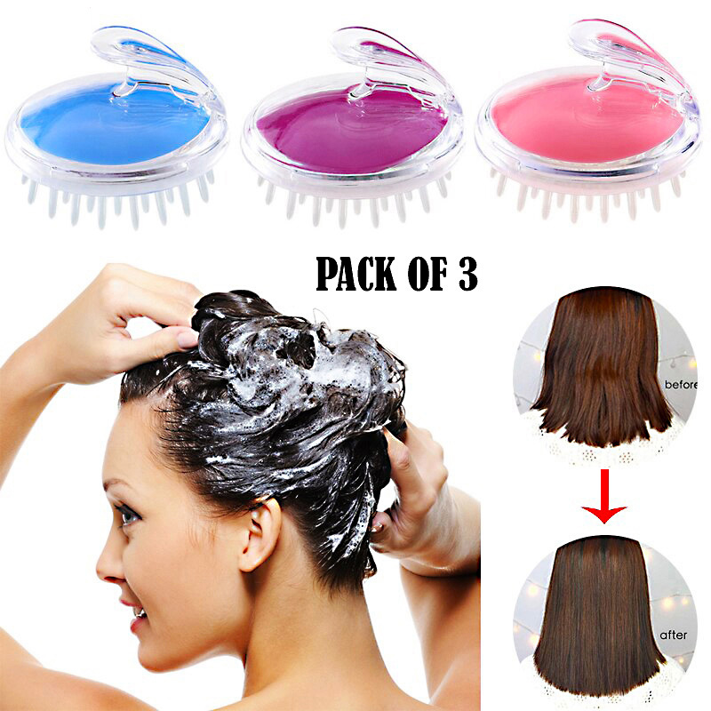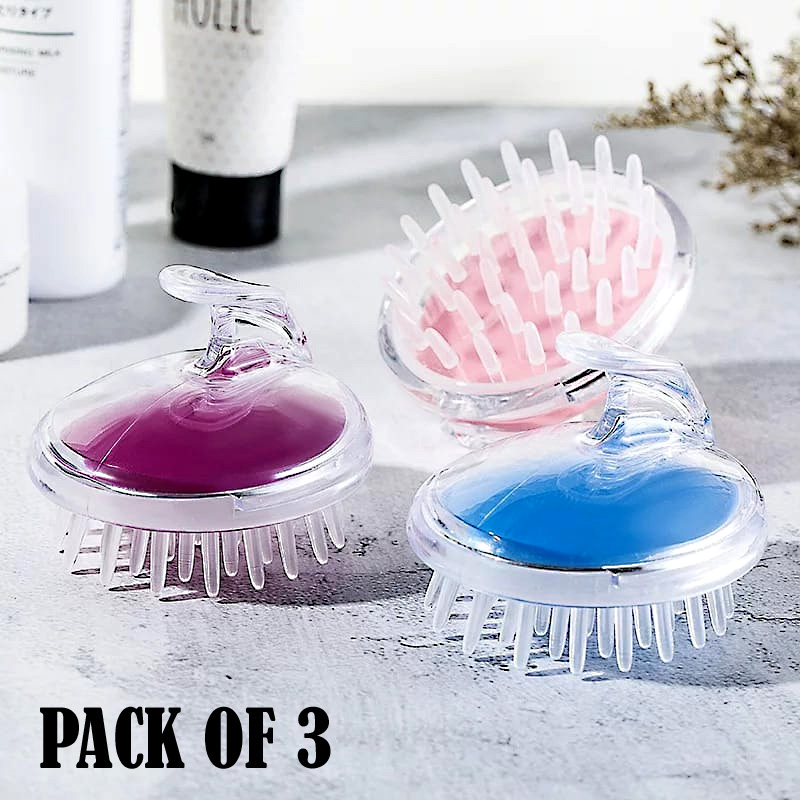 Pack of 3 Silicone Scalp Massager & Shampoo Brushes – Deep Clean & Hair Growth Care