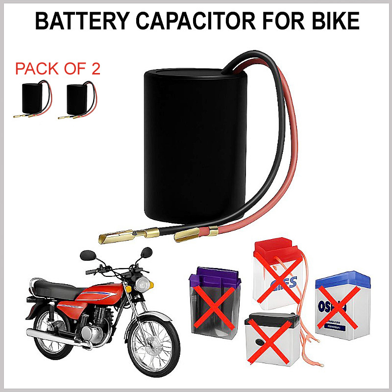 Pack of 2 Universal 12V Motorcycle Battery Capacitor– Heavy Duty Battery Alternative for CD70, CG125 & China Bikes