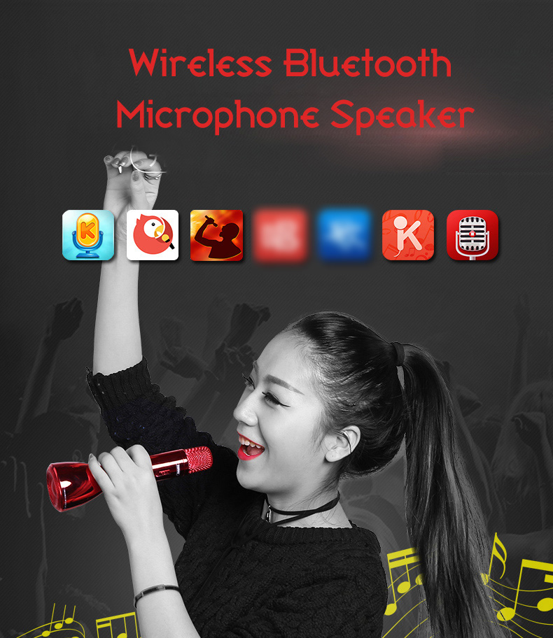 Wireless singing: switch on, Bluetooth connection, music play, vocal volume, start karaoke.