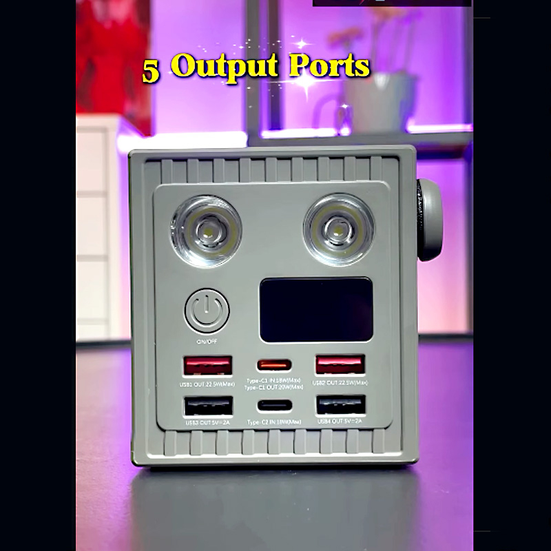 With five output ports for simultaneous charging and a high-intensity dual LED emergency flashlight, this power bank is designed to keep you powered and prepared in any situation.