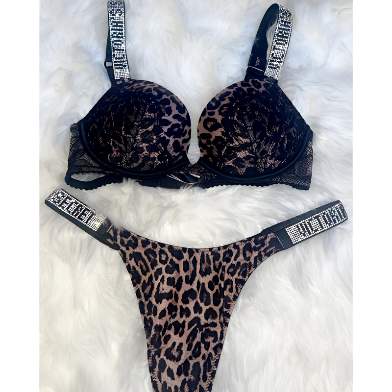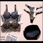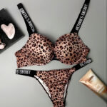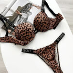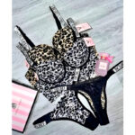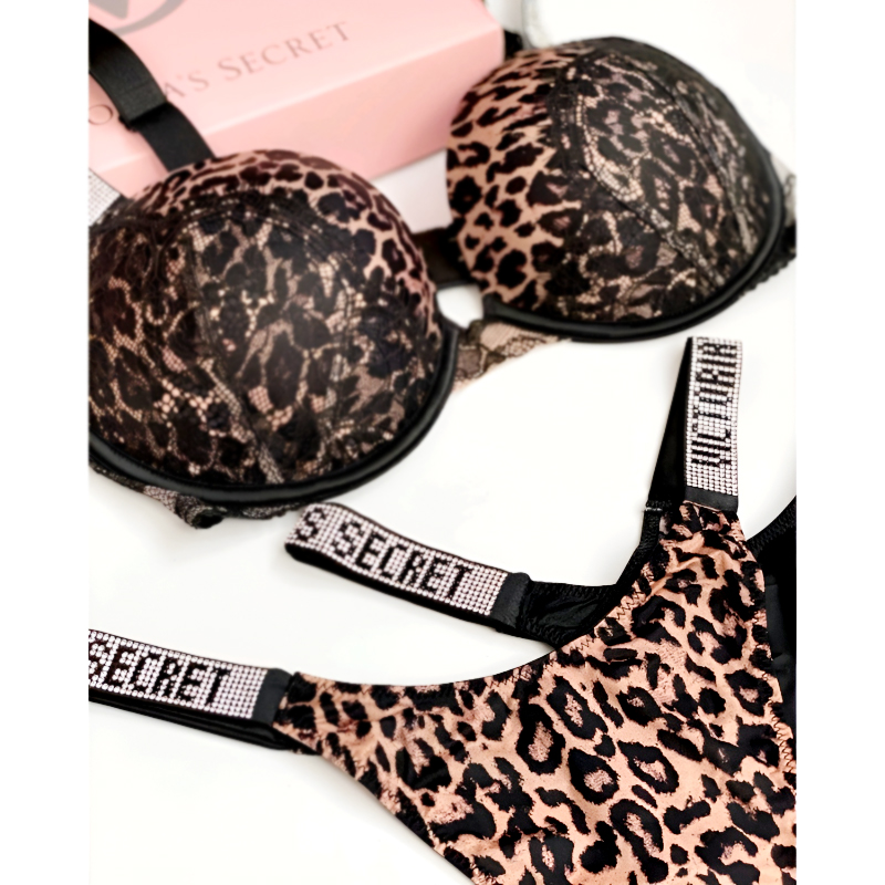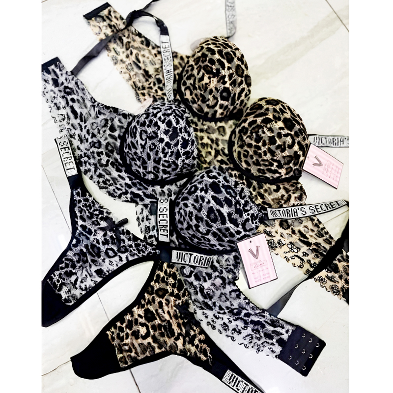 Elevate your lingerie collection with this luxurious leopard print bra & panty set, crafted for both comfort and style. The push-up padded bra with underwire support and delicate lace detailing enhances your natural shape while ensuring all-day wearability. Paired with a matching high-cut thong panty, this set delivers a bold yet feminine look.