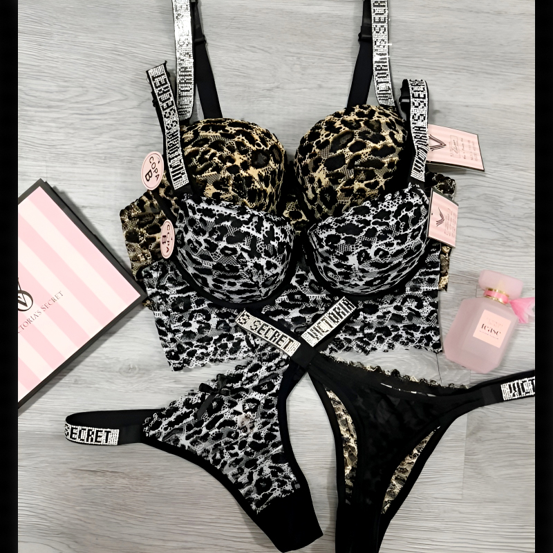 Designed with premium elastic straps featuring chic branded detailing, this lingerie set combines elegance, confidence, and allure—making it a must-have for every wardrobe.
