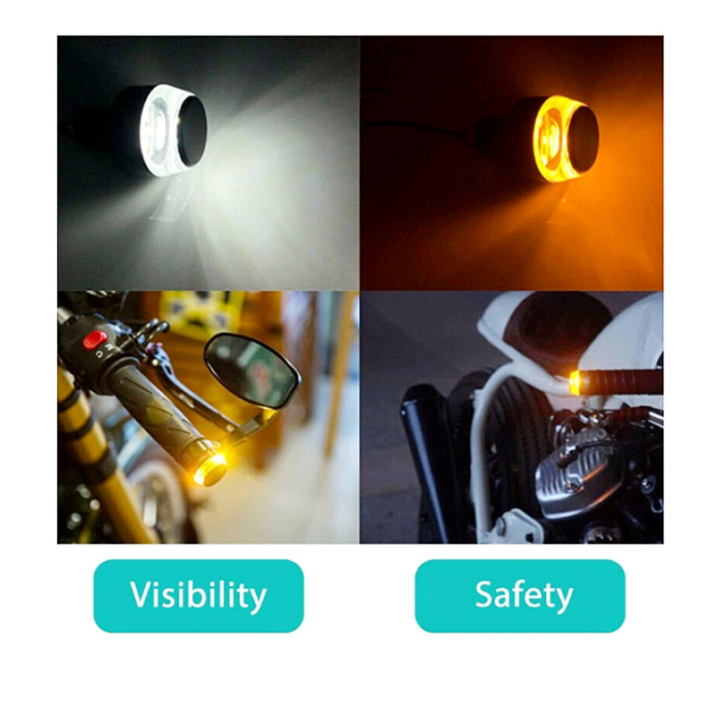 Enhance your riding safety and upgrade your bike’s aesthetic with these premium 2-piece Dual-Color LED Handlebar End Indicators, designed for maximum visibility and a sleek, modern look that functions as both high-brightness Daytime Running Lights (DRL) and sharp Turn Signal Blinker lights.