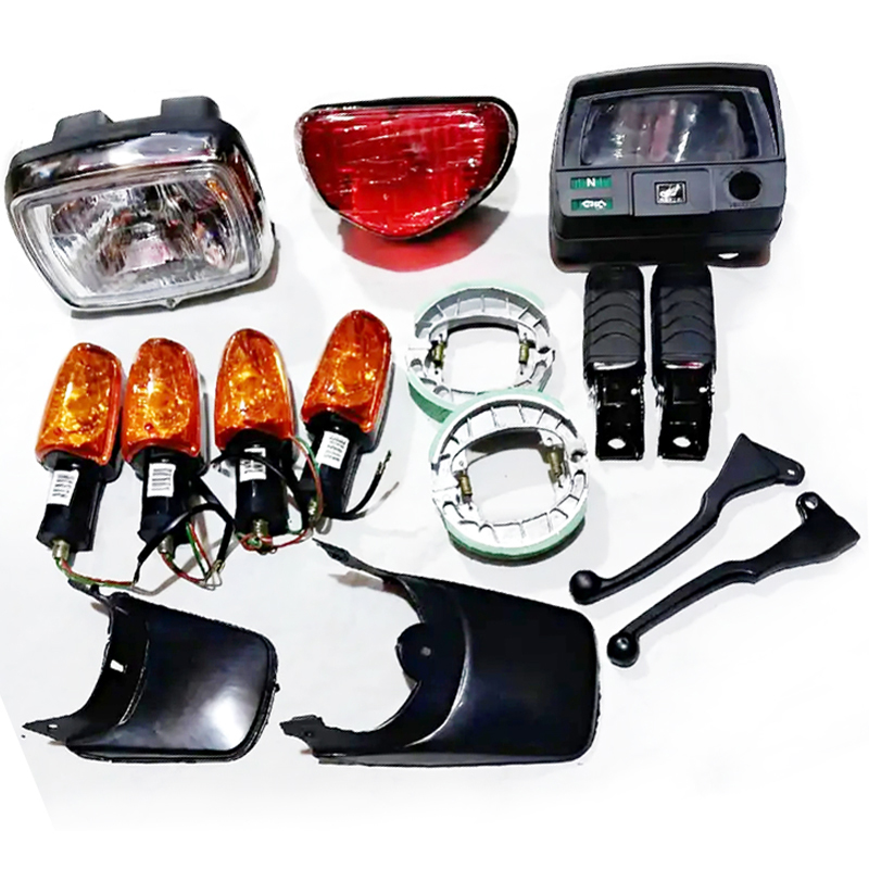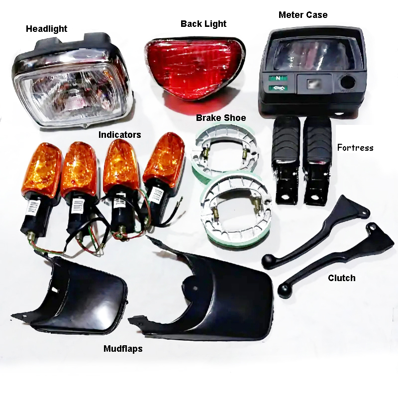 What’s in the box:1 x Bike Headlight, 1 x Back Light (Tail Light), 1 x Meter Case (Speedometer Housing), 4 x Indicators (Turn Signals), 2 x Brake Shoes, 2 x Fortress, 2 x Clutch, 2 x Mudflaps
