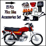 Upgrade and maintain your motorcycle with this complete 15-piece all-in-one accessories bundle, specifically curated for the 70cc Honda CD70 and similar bike models.
