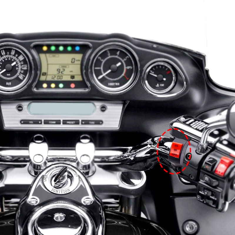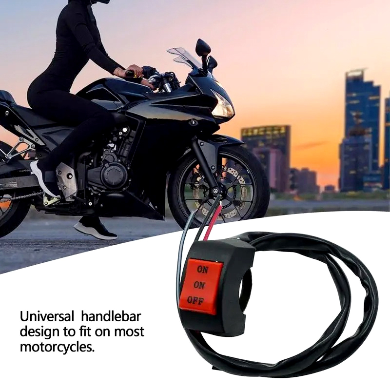 Featuring a universal 22mm (7/8″) mounting hole, it is compatible with most 12V DC motorcycles, scooters, and ATVs. Pre-wired connections and a simple mounting design make for a straightforward installation, enhancing both your safety and visibility with quick, handlebar-mounted control.