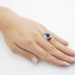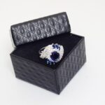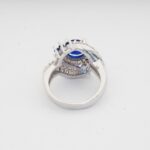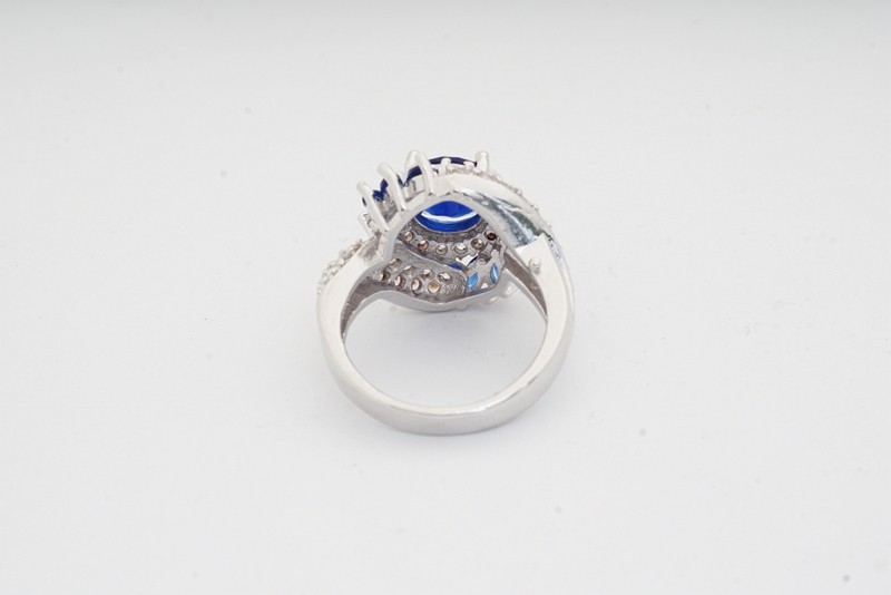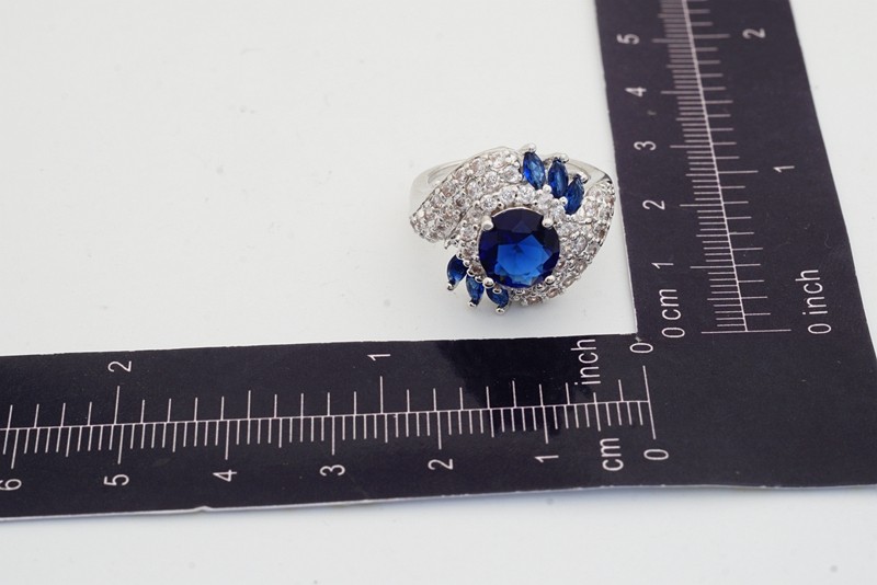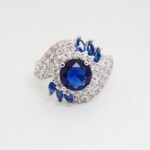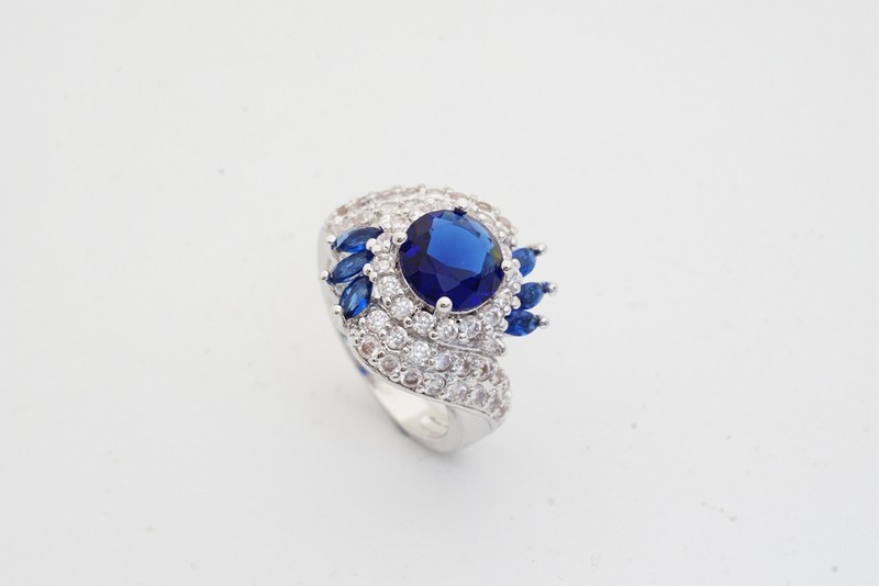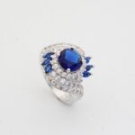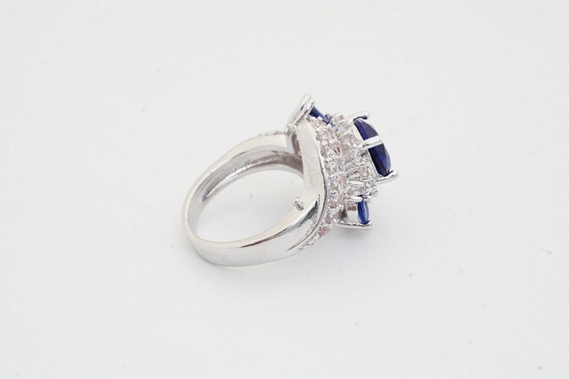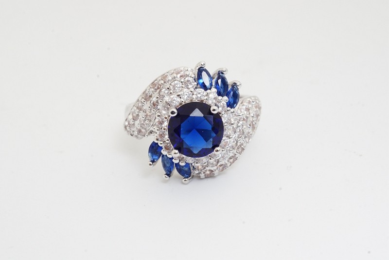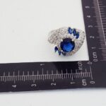 Unique Artwork: The ring features multiple layers of white stones that beautifully highlight the central blue gemstone.